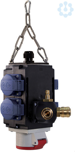 ENERGIEWÜRFEL anschlussfertig verdrahtet, Leitungseinführung mit Verschraubung von 3x1,5mm² bis 5x2,5mm² 4xSchutzkontaktsteckdosen IP44 1xCEE 16A 400V IP44 1xEingang Druckluft 0,5| 2xAusgang 0,5| Im Polybeutel verpackt
