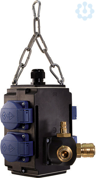 ENERGIEWÜRFEL anschlussfertig verdrahtet, Leitungseinführung mit Verschraubung von 3x1,5mm² bis 5x1,5mm² 4xSchutzkontaktsteckdosen IP44 1x Eingang Druckluft 0,5| 2x Ausgang 0,5| Im Polybeutel verpackt