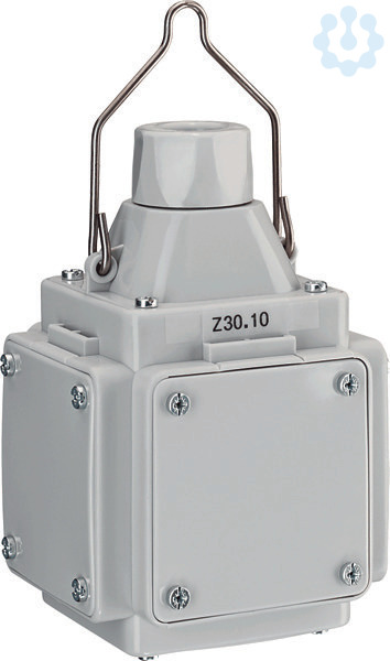 Energiewürfel Leergehäuse in lichtgrau (elektrograu). Jeder Energiewürfel, einschließlich der Einbaugeräte, ist stückgeprüft nach EN 61439-3. Der gesamte Energiewürfel ist spritzwassergeschützt nach IP 44. Das Gehäuse wird aus dem Kunststoff Polyamid gefertigt. Dieser hochwertige Kunststoff zeichnet sich besonders durch seine hervorragende Festigkeit und Zähigkeit aus. Ohne Einbauten hat der Würfel die Abmessung von (HxBxT) 160 x 104 x 104 mm. Das Gehäuse hat einen Aufhängebügel und eine Leitungseinführung (Verschraubung) von oben. Die Verschraubung ist für eine Zuleitung von 3 x 1,5 mm² bis zu 5 x 6 mm² geeignet. Der Außendurchmesser der Zuleitung darf maximal 19 mm betragen. Zum Anschluss der Zuleitung steht ein Klemmstein zur Verfügung. Der Klemmstein ist für eine Zuleitungen von 5 x 6 mm² (starr) geeignet.