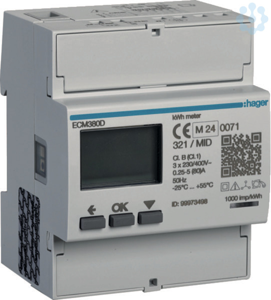 Energiezähler 3phasig, direkt 80A, 4M, MBUS, MID. Energiezähler zur 4-Quadrantenmessung mit folgenden Genauigkeitsklassen: Wirkenergie Class B nach DIN EN 50470-3, Wirkleistung Class 1 nach IEC 62053-21, Wirkleistung Class 1 nach IEC 61557-12 und Blindleistung Class 2 nach IEC 62053-23. Der Zweirichtungszähler wird ab Werk MID zertifiziert (ein Plombierset im Lieferumfang enthalten) und enthält einen rücksetzbaren Teilzähler. Zur Messung von Energiebezug- und Energielieferung in allen Netzsystemen geeignet. 2 Tarifzählungen über 230 V AC oder Mbus ansteuerbar. Digitales Display mit Beleuchtung zur Anzeige von bezogener und gelieferter Wirk- (kWh) und Blindenergie (kvarh) für alle Tarife. Zusätzlich werden je Außenleiter die Echtzeitmesswerte für Wirkleistung (kW), Blindleistung (kvar), Scheinleistung (kVA), Spannung (V), Strom (A), Leistungsfaktor, Frequenz (Hz) und Tarif in einer Auflösung bis zu 9 Stellen inklusive zwei Nachkommastellen angezeigt. Neben den zuvor genannten Messwerten können über Mbus auf di