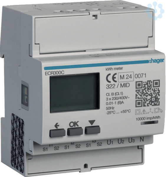 Energiezähler 3phasig für Wandlerverähltnis 1A oder 5A, 4M, MODBUS, MID. Energiezähler zur 4-Quadrantenmessung mit folgenden Genauigkeitsklassen: Wirkenergie Class B nach DIN EN 50470-3, Wirkleistung Class 1 nach IEC 62053-21, Wirkleistung Class 1 nach IEC 61557-12 und Blindleistung Class 2 nach IEC 62053-23. Der Zweirichtungszähler wird ab Werk MID zertifiziert (ein Plombierset im Lieferumfang enthalten) und enthält einen rücksetzbaren Teilzähler. Zur Messung von Energiebezug- und Energielieferung in allen Netzsystemen geeignet. Bis zu 8 Tarifzählungen möglich (2 Tarifzählungen über 230 V AC und Modbus, zusätzlich 6 Tarifzählungen über Modbus ansteuerbar). Digitales Display mit Beleuchtung zur Anzeige von bezogener und gelieferter Wirk- (kWh) und Blindenergie (kvarh) für alle Tarife. Zusätzlich werden je Außenleiter die Echtzeitmesswerte für Wirkleistung (kW), Blindleistung (kvar), Scheinleistung (kVA), Spannung (V), Strom (A), Leistungsfaktor, Frequenz (Hz) und Tarif in einer Auflösung bis zu 9 Stellen inkl