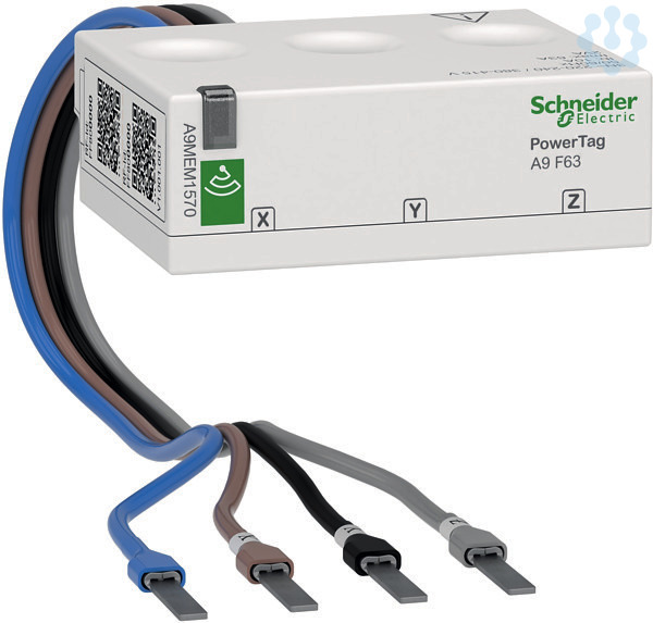 Elektronische Energiezähler PowerTag Flex für Endstromkreise zur Direktmessung bis 63 A. Vermeidung unsymmetrischer Lastzustände oder zur Überwachung von Spannungsausfällen mit Alamfunktionen. Innovative Bauform ohne Platzbedarf auf der Hutschiene geringere Installationszeit und weniger Fehlerquellen für Neu und Bestandsanlagen, ganz ohne Verdrahtung für Versorgung und Kommunikation. Kommunikation wird mit einem Acti9 Smartlink SI B (Ethernet) oder Acti9 PowerTag Link realisiert. Wirkenergie Ea (Klasse 1), Gesamt- und Teilwirkenergie (kWh) 1 Quadrant. Echtzeitmesswerte, einfache und verkettete Spannungen U, V (Phase-Neutral und Phase-Phase) (V), Strom I je Phase (A), Wirkleistung P, gesamt und je Phase (W), Leistungsfaktor LF.