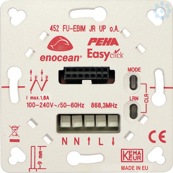 Der bidirektionale Easyclick-JR-Empfänger empfängt nicht nur die Funksignale, sondern sendet bei jeder Zustandsänderung seinen Status zurück. Der Easyclick-Empfänger dient zum Steuern von Rollläden und Jalousien. - Mit Tragplatte zur Schraubbefestigung in Schalterdosen mit 60 mm Abstand der Geräteschrauben - Mit Buchsenleiste zur Aufnahme von Tastaufsatz, 2-fach D xx.425.xx JR zum lokalen Steuern Es sind verschiedene Funktionen und Parameter wählbar.