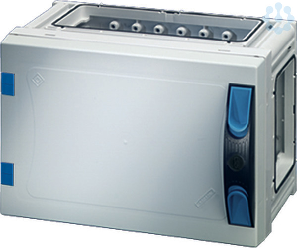 Gehäuse mit Tür für den Bau von Installationsverteilern bis 250 A für die Bedienung durch Laien nach IEC 61439-3. Offene Gehäusewände für die Kombination oder als Einzelgehäuse mit Verschlussplatten. Aus hochwertigem Polycarbonat, schutzisoliert. Schnelle Gehäuseverbindung durch Steckverbinder und integrierte Dichtungen. Große Wanddurchführungen für die elektrische Verbindung der Gehäuse untereinander. Kabeleinführung über Flansche. Wandbefestigung direkt am Gehäuse, über Außenlaschen oder mit Montageschienen. Leergehäuse mit nicht durchsichtiger Tür und plombierbarem Türverschluss mit Handbetätigung. Für den Einbau von Geräten auf Montageplatte oder DIN-Tragschiene, Einbaumaße B 216 x H 126 x T 140 mm. Max. Einbautiefe bei eingebauter Montageplatte 136 mm, bei eingebauter Tragschiene 125 mm.
