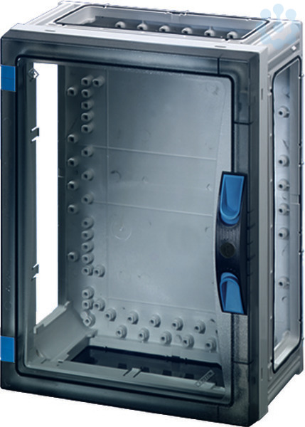 Gehäuse mit Tür für den Bau von Installationsverteilern bis 250 A für die Bedienung durch Laien nach IEC 61439-3. Offene Gehäusewände für die Kombination oder als Einzelgehäuse mit Verschlussplatten. Aus hochwertigem Polycarbonat, schutzisoliert. Schnelle Gehäuseverbindung durch Steckverbinder und integrierte Dichtungen. Große Wanddurchführungen für die elektrische Verbindung der Gehäuse untereinander. Kabeleinführung über Flansche. Wandbefestigung direkt am Gehäuse, über Außenlaschen oder mit Montageschienen. Leergehäuse mit transparenter Tür und plombierbarem Türverschluss mit Handbetätigung. Für den Einbau von Geräten auf Montageplatte oder DIN-Tragschiene, Einbaumaße B 216 x H 306 x T 140 mm. Max. Einbautiefe bei eingebauter Montageplatte 136 mm, bei eingebauter Tragschiene 125 mm.