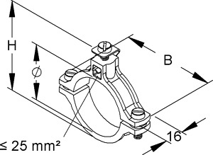 Erdungs-Rohrschelle mit Drahtschutzbügel, zur Sicherstellung des Potentialausgleichs nach DIN VDE 0100..., für die Verwendung in trockenen Innenräumen, verwendbar für verzinkte Rohre. Abmessungen (ca. Maße) H x B x T : 87 x 87 x 16 mm für Rohr-Ø : 54 mm für Leiterquerschnitt : ? 25 mm² Werkstoff Oberteil/Unterteil : Zinkdruckguß Werkstoff Schrauben : Stahl, galvanisch verzinkt