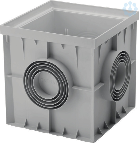 Erdeinbaukasten als Zugkasten bzw., Richtungsaenderung von Kabelschutzrohren. Auf allen Seiten sind ausschlagbare Vorpraegungen fuer Kabelschutzrohre von 50 bis 110 mm vorhanden. Der Boden des Erdeinbaukasten ist ausschlagbar. Dadurch sind die Erdeinbaukaesten, zur Vergroesserung der Einbautiefe, stapelbar. Entsprechende Schraubverbinder muessen separat bestellt werden.