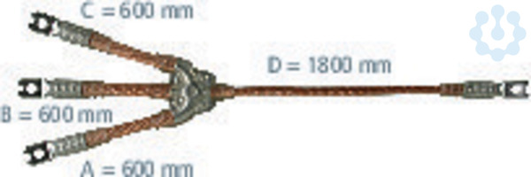 mit geeigneten Klemmen, nach DIN VDE 0683-100 (EN/IEC 61230). Seilquerschnitt: 120/50 mm2, Max. Kurzschlussstrom: 33,5 kA / 0,5 s, Seillänge A = 600 mm, B = 600 mm, C = 600 mm und D = 1800 mm, Varianten.-Nr. V8115WA. Erdungs- und Kurzschließvorrichtungen können über den EuK-Konfigurator online unter www