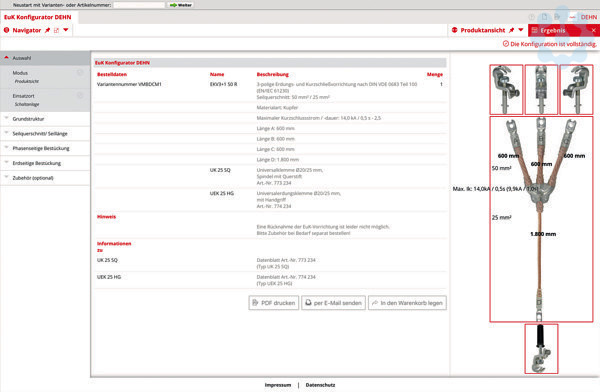 Dreipolige Erdungs- und Kurzschließvorrichtung nach DIN VDE 0683-100 (EN/IEC 61230), Seilquerschnitt: 50 mm² / 25 mm², Maximaler Kurzschlussstrom / -dauer: 14,0 kA / 0,5 s - 2,5. Länge A=B=C= 600 mm, Länge D = 1800 mm. phasenseitig bestückt mit 3x Universalklemme Ø20/25 mm, SQ mit Art.-Nr. 773 234 und erdseitig bestückt mit 1x Universalerdungsklemme Ø20/25 mm, mit Handgriff und Art.-Nr. 774 234.