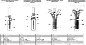 Erdungsgarnitur für Endverschlüsse für 1-Leiter-Kabel mit Kupfer-Bandschirm oder Aluminium-Schirm sowie für 3-Leiter-Kabel ohne Armierung. Bestandteile: 3 flachgewalzte Kupferseile und 3 Rollfedern. Anwendungsgebiete: Erdungsüberführung und -kontaktierung, für Kabelgarnituren in Gießharz-, Schrumpf- und Aufschiebetechnik, lötfreie elektrische Verbindungen von metallenen Kabelaufbauelementen (Schirm, Bewehrung, Metallmantel). Eigenschaften: Einfache, sichere, schnelle Montage, sehr gute elektrische Eigenschaften, hohe mechanische Festigkeit. Lieferumfang: 1 Satz für 3 Phasen: Kupferseile, Rollfedern RF.
