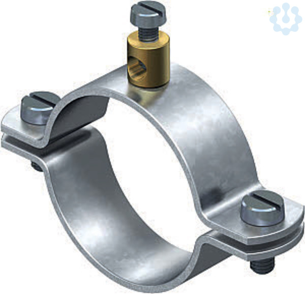 Erdungsschelle - Für Rohre 1/4-1 1/2 Zoll bzw. Ø 11,5-48,3 mm - Anschlussmöglichkeiten: Leitungen bis 16 mm² mit Anschlussklemme, vernietet aus Messing und 1 Zylinderschraube M5 x 12 - Bis Größe 1 1/2 Zoll mit 2 Zylinderschrauben M6 x 16 (G) Gewicht: 5,316 kg/100 St. Typ: 925 3/4 Art.-Nr.: 5040094
