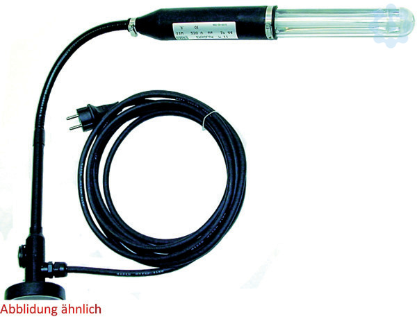und Röhre. Biegsamer Metallschlauch. Verschiedene Befestigungsmöglichkeit: Mit Tischklammer