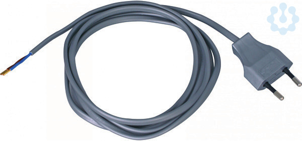 Europa-Zuleitung, Europa-Stecker, abgemanteltes Leitungsende mit Aderendhülsen, Leitung H03VVH2-F 2x0,75mm², 2-polig, 2,5A, 250V~, 2m, Farbe: stahl