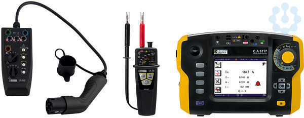 ? Installationstester CA 6117 ? Auswerte- und Protokollsoftware DataView ? Prüfadapter für AC-Ladestationen für Elektrofahrzeuge CA 6652 ? Spannungsprüfer CA 762 IP2X ist die optimale Lösung für elektrische Sicherheitsprüfungen an Ladestationen mit FI-Schutzschalter Typ A, B und EV 6 mA.