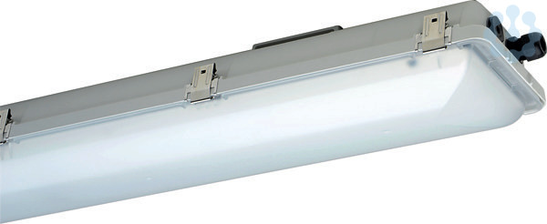 EX-LED-Wannenleuchte, ExeLED 1, EX-Zone 1/21/2/22, 15 W, 2170 lm, SKI, IP66, 6500 K, Ra? 80, Ta -30 °C/+65 °C, L80B50>100000 h (@ Ta max), L80B50>100000 h (@ Ta 25°C), L90B50>85000 h (@ Ta 25°C), Wanne PC, Verschluss Edelstahl (1.4571), Gehäuse glasfaserverstärktes Polyester, Farbe grau, Rein-Raus-Verdrahtung (RR), EAN/GTIN:4041254343020.Explosionsgeschütze LED-Wannenleuchte ExeLED 1 für Zone 1/21. Glasfaserverstärktes Polyestergehäuse, satinierte Abschlusswanne aus Polycarbonat mit Silikondichtung und Verschlussklammern aus Edelstahl, davon zwei Sicherheitsverschlüsse. Aluminiumreflektor lackiert mit vergossenen LED-Modulen in Abschlusswanne eingerastet (Sandwichbauweise), komplett abhängbar. Gekapseltes EVG mit Überspannungs-, Überlast- und Kurzschlussschutz. Außenliegendes Befestigungssystem mit Halteklammern zur variablen Befestigung (Zubehör).