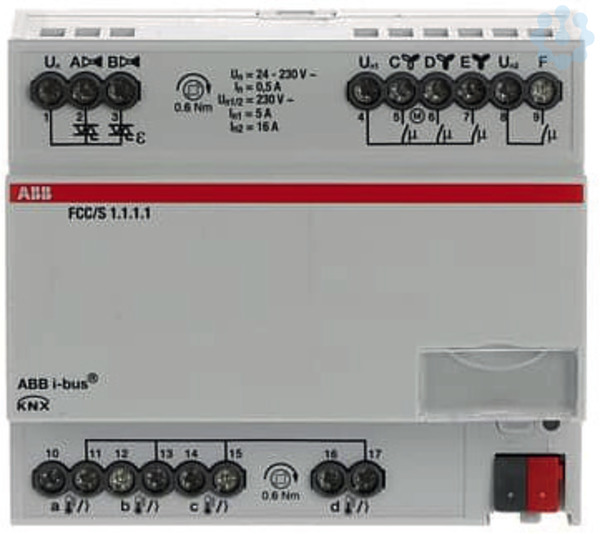 Zur Steuerung von Fan Coil Units bzw. Gebläsekonvektoren. Über zwei elektronische Ausgänge können zwei thermoelektrische Ventilantriebe oder ein motorbetriebener Ventilantrieb zum Heizen oder Kühlen gesteuert werden. Zur Lüftersteuerung besitzt das Gerät drei Relaisausgänge. Ein Relaisausgang schaltet eine zusätzliche Last von bis zu 16 A, wie z. B. eine elektrische Zusatzheizung. Über 4 Eingänge kann der Raumstatus erfasst und überwacht werden (nutzbar für Fensterkontakt, Taupunktsensor, Füllstandssensor oder Temperatursensor). Außerdem ist es möglich, ein analoges Raumbediengerät (SAR/A oder SAF/A) mit den Eingängen des Gerätes zu verbinden. Zur Regelung der Raumtemperatur verfügt das Gerät über einen integrierten Raumtemperaturregler, welcher direkt zur Steuerung der Ausgänge des Gerätes verwendet werden kann. Für erweiterte Diagnosefunktionen sowie eine verbesserte Inbetriebnahme kann das ABB i-bus Tool genutzt werden.