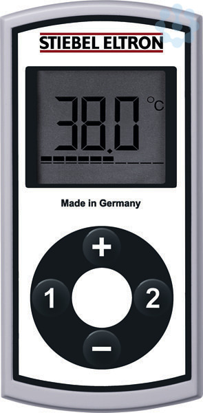 Die Funk-Fernbedienung ermöglicht die komfortable Bedienung der Komfort-Durchlauferhitzer. Sie kann in einer Wandhalterung an beliebiger Stelle, z. B. Bad oder Küche, positioniert werden. Ausgestattet mit gut ablesbarem, großem LC-Display. Einstellung der Wunschtemperatur mit Plus- und Minustasten oder mit den einfach programmierbaren Memorytasten. Stromsparmodus für verlängerte Batterielebensdauer. Hoher Feuchteschutz, z.B. zur Verwendung in der Dusche.