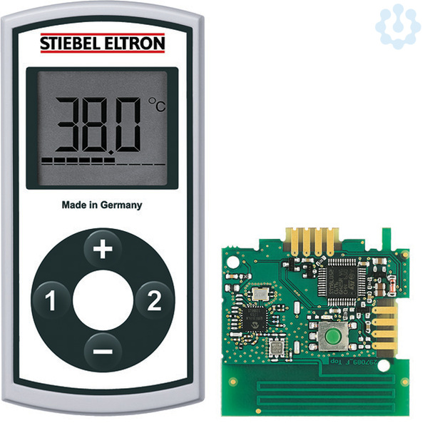 Die Funk-Fernbedienung ermöglicht die komfortable Bedienung der Komfort-Durchlauferhitzer. Sie kann in einer Wandhalterung an beliebiger Stelle, z. B. Bad oder Küche, positioniert werden. Ausgestattet mit gut ablesbarem, großem LC-Display. Einstellung der Wunschtemperatur mit Plus- und Minustasten oder mit den einfach programmierbaren Memorytasten. Stromsparmodus für verlängerte Batterielebensdauer. Hoher Feuchteschutz, z.B. zur Verwendung in der Dusche.