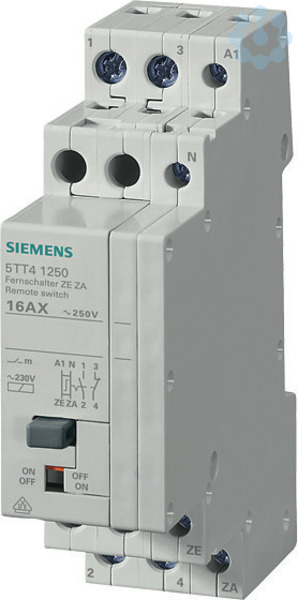 Fernschalter mit 1 Schließer, und 1Ö mit zentral Ein-aus Funktion Kontakt für AC 230V, 400V 16A Ansteuerung AC 230V Siemens Schaltgeräte für Anwendungen im Wohn-, Zweckbau und industriellen Anwendungen. Die innovativen Schaltgeräte von Siemens sind ein wichtiger Bestandteil der SENTRON Komponenten für die Elektroinstallation. Mit den Fernschaltern, Schaltrelais, Insta-Schützen und Zeitschaltuhren bieten sie zahlreiche Möglichkeiten zur Realisierung diverser Schaltfunktionen. Ob für Wohnbau, Infrastruktur oder industrielle Anwendungen, Siemens bietet das richtige Portfolio für alle Schaltfunktionen. So haben Sie für jede Anforderung das passende Gerät! Die Schaltgeräte von Siemens zeichnen sich vor allem aus durch: 1. Komfortable und einfache Montage- sowie Anschlusstechnik. 2. Zuverlässige Sicherheit bei der Installation dank standardmäßigem Berührungsschutz. 3. Umfangreiches und problemlos montierbares Zubehör. 4. Optimale Technik für Ihre Sicherheit - nur von Siemens. www .de/lowvoltage. Siemens biet