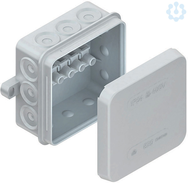 Feuchtraum-Abzweigdose, mit Deckel und einer 5-poligen Verbindungsklemme 2,5 mm², mit 12 Einführungen für Kabeldurchmesser 8 - 12,5 mm, zur Aufputzmontage in trockenen und feuchten Innenräumen, halogenfrei. Abmessungen (ca. Maße) H x B x L : 37 x 78,5 x 78,5 mm Klemmbereich eindrähtig, starr, flexibel : 1,5 - 2,5 mm² Anschlussmöglichkeiten eindrähtig : 5 x 1,5 mm², 4 x 2,5 mm² Anschlussmöglichkeiten starr, flexibel : 4 x 1,5 mm², 3 x 2,5 mm² Werkstoff Sockel/Abdeckung : Polyethylen (PE) Werkstoff Isolierteil : Polyamid (PA) Werkstoff Klemmbolzen : Messing Werkstoff Zylinderschrauben : galvanisch verzinkter Stahl Temperaturbereich : -40° bis 80°C Schutzart : IP54 Nennspannung : 400 V Farbton : lichtgrau RAL : 7035 (ähnlich)