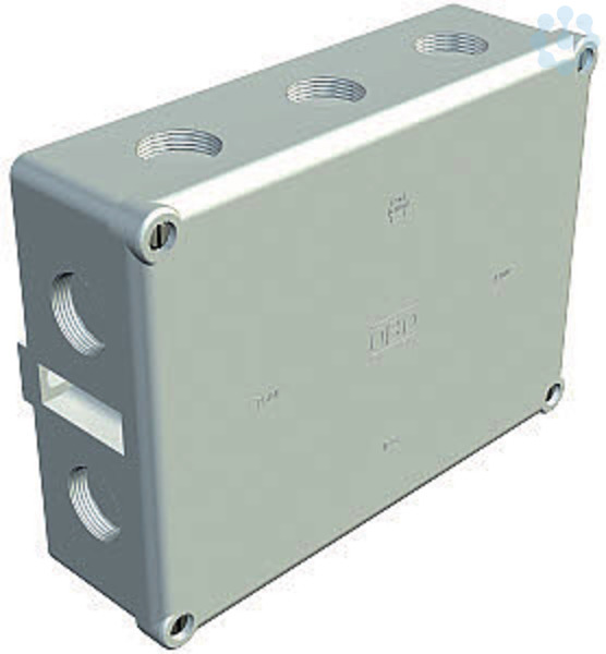 Schutzart IP54, Nennspannung 660 V, Nennquerschnitt mm², 2 Befestigungslöcher für Schrauben bis 6 mm Ø an der Außenseite des Kastens. 4 Deckelschrauben, 10 ausbrechbare Einführungen mit Gewinde M25 x 1,5. Abmessungen: 196 x 144 x 71 mm Lichte Innenmaße: 178x126x57 mm