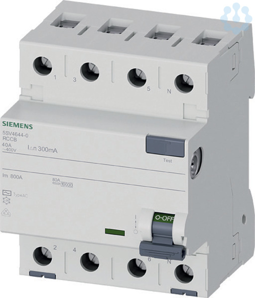 FI-Schutzschalter, 4-polig, Typ AC, In: 40 A, 300 mA, Un AC: 400 V Der FI-Schalter ist die Fehlerstrom-Schutzeinrichtung für Berührungsschutz Die patentierten Fehlerstrom-Schutzeinrichtungen von Siemens sind ein wichtiger Bestandteil der SENTRON Schutzkomponenten für die Elektroinstallation, denn sie verhindern lebensbedrohliche Stromunfälle durch sicheres Abschalten gefährlicher Fehlerströme gegen Erde. Elektrisch gezündete Brände können bereits im Entstehen verhindert werden. Ob durch direktes Berühren betriebsmäßig unter Spannung stehender Teile oder durch indirektes Berühren von Betriebsmitteln - der Schutz wird vor allem durch schnelles Abschalten erreicht. Die Siemens FI-Schutzschalter 5SV zeichnen sich vor allem aus durch: 1. Umfassenden Schutz für Personen und Sachwerte vor elektrischem Schlag. 2. Ob sinusförmige Wechselfehlerströme oder glatte Gleichfehlerströme - Siemens bietet für alle Anforderungen den passenden Typ sowie spezielle Ausführungen. 3. Zuverlässige Sicherheit bei der Installation dank
