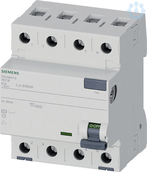 FI-Schutzschalter, 4-polig, Typ AC, In: 80 A, 300 mA, Un AC: 400 V Der FI-Schalter ist die Fehlerstrom-Schutzeinrichtung für Berührungsschutz Die patentierten Fehlerstrom-Schutzeinrichtungen von Siemens sind ein wichtiger Bestandteil der SENTRON Schutzkomponenten für die Elektroinstallation, denn sie verhindern lebensbedrohliche Stromunfälle durch sicheres Abschalten gefährlicher Fehlerströme gegen Erde. Elektrisch gezündete Brände können bereits im Entstehen verhindert werden. Ob durch direktes Berühren betriebsmäßig unter Spannung stehender Teile oder durch indirektes Berühren von Betriebsmitteln - der Schutz wird vor allem durch schnelles Abschalten erreicht. Die Siemens FI-Schutzschalter 5SV zeichnen sich vor allem aus durch: 1. Umfassenden Schutz für Personen und Sachwerte vor elektrischem Schlag. 2. Ob sinusförmige Wechselfehlerströme oder glatte Gleichfehlerströme - Siemens bietet für alle Anforderungen den passenden Typ sowie spezielle Ausführungen. 3. Zuverlässige Sicherheit bei der Installation dank