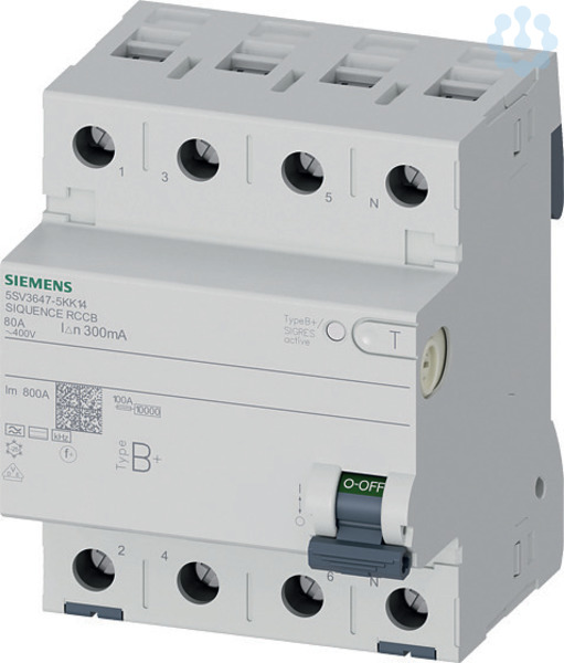 FI-Schutzschalter, 4-polig, Typ B+, selektiv, In: 80 A, 300 mA, Un AC: 400 V Der FI-Schalter ist die Fehlerstrom-Schutzeinrichtung für Berührungsschutz Die patentierten Fehlerstrom-Schutzeinrichtungen von Siemens sind ein wichtiger Bestandteil der SENTRON Schutzkomponenten für die Elektroinstallation, denn sie verhindern lebensbedrohliche Stromunfälle durch sicheres Abschalten gefährlicher Fehlerströme gegen Erde. Elektrisch gezündete Brände können bereits im Entstehen verhindert werden. Ob durch direktes Berühren betriebsmäßig unter Spannung stehender Teile oder durch indirektes Berühren von Betriebsmitteln - der Schutz wird vor allem durch schnelles Abschalten erreicht. Die Siemens FI-Schutzschalter 5SV zeichnen sich vor allem aus durch: 1. Umfassenden Schutz für Personen und Sachwerte vor elektrischem Schlag. 2. Ob sinusförmige Wechselfehlerströme oder glatte Gleichfehlerströme - Siemens bietet für alle Anforderungen den passenden Typ sowie spezielle Ausführungen. 3. Zuverlässige Sicherheit bei der Install