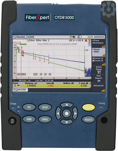 Eigenschaften: OTDR für Multimode 850/1300nm oder kombiniert Multimode 850/1300nm und Singlemode 1310/1550nm Automatische Pass/Fail Analyse der Messergebnisse nach TIA/IEC Grenzwerten Automatische Macrobenderkennung Standard konforme Tier 2 Vermessung von Glasfaserverkabelungen Eingebautes Dämpfungsmessgerät Optionales Glasfasermikroskop 5 Zoll großes farbiges Touch Display Freihändig bedienbar dank spezieller Umhängetasche Professionelle Messprotokolle mit der zentralen Auswertesoftware eXpor