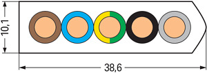 Flachleitung. Eca. 5G10 mm². PVC. 3L + N + PE. 0,6 / 1 kV. 10,00 mm². lichtgrau