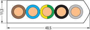 Flachleitung. 5G16 mm². halogenfrei. 3L + N + PE. 0,6 / 1 kV. 16,00 mm². lichtgrau