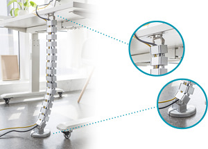 - Die Kabelschlange ist die Ideale Ergänzung für höhenverstellbare und freistehende Schreibtische um Kabel zu verstecken, die vom Boden auf die Tischplatte führen - Der Kabel-Schlauch besteht aus 28 modularen Gliedern, die sich zur individuellen Längenanpassung einzeln von dem Kabel-Kanal entfernen lassen - Max. 130 cm zwischen Boden und Tisch-Platte - Ein Kunststoff-Standfuß im Metall-Gewicht fixiert die Kabelführung am Boden, sodass sich die eckige Kabel-Schlange kontrolliert und ordentlich ablegt, ohne zu verheddern oder Kabelsalat zu verursachen - Für eine optimale Kabel-Organisation ist die Kabelspirale in 4 separate Kammern unterteilt, durch die Stromkabel, Monitor-Anschlusskabel oder Audio-Kabel geführt werden können - Mit der robusten und zugleich flexiblen Kabelführung schaffen Sie Ordnung an Ihrem Arbeitsplatz, ob im Büro oder in Ihrem heimischen Arbeitszimmer