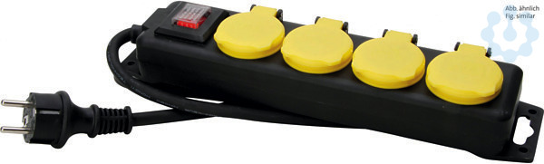 4-fach Feuchtraum-Steckdosenleiste, mit Klappdeckel, Schutzklasse IP44, mit beleuchtetem Schalter, mit 45° gedrehten Töpfen, mit erhöhtem Berührungsschutz, Zuleitung H07RN- F3G1,5mm², 1,4m, 16A, 250V~, gelb-schwarz