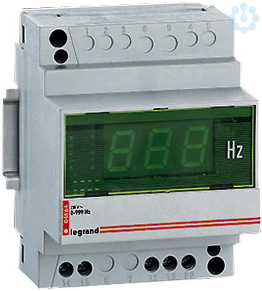 (Hz) eines Stromkreises 230 VAC, Versorgungsspanung 230 VAC. Frequenzmesser 4-modulig, Befestigung auf Hutprofilschiene EN 60715.
