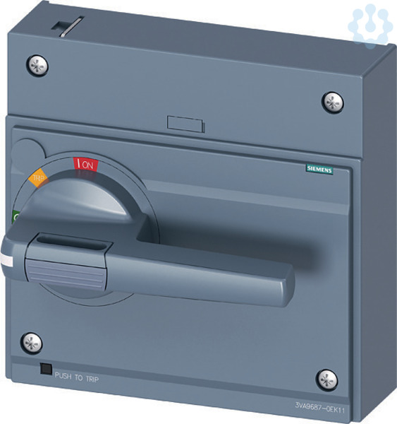 FRONTDREHANTRIEB STANDARD IEC IP30/40 ZUBEHOER FUER: 3VA15/25 1000 Manuelle Antriebe für Kompaktleistungsschalter 3VA. Für eine rundum komfortable Bedienung des Kompaktleistungsschalter 3VA - Frontantrieb, Türkupplungs- oder Seitenwanddrehantrieb. Diese Zubehörkomponenten zeichnen sich vor allem aus durch: 1. Als Front-, Tür und Seitenwanddrehantrieb verfügbar. 2. Handhaben als Varianten Standard mit und ohne Beleuchtungskit und NOT-HALT mit und ohne Beleuchtungskit verfügbar. 3. Optionales Beleuchtungskit für optimale Erkennung der Schalterstellung auch bei Starker Verschmutzung. 4. Diverse Abschließ- und Verriegelungsmöglichkeiten. www .de/3VA. Siemens bietet für die sichere, effiziente elektrische Infrastruktur in Gebäuden und Industrie ein durchgängiges Portfolio an Schutz-, Schalt-, Mess- und Überwachungsgeräten, Verteilersysteme sowie Schaltern und Steckdosen.