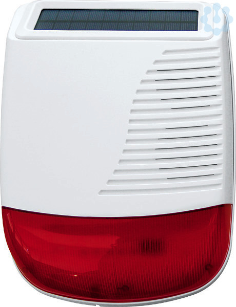 Funk-Außensirene weiß, 260x200x70mm, mit Solarzelle und Lithium-Polymer-Akku. Schutzart IP54. Smart Home Aktor. Die Sirene dient zur akustischen und optischen Alarmsignalisierung. Mittels Jumper können 4 verschiedene Alarmmodulationen ausgewählt werden, die Lautstärke beträgt mindestens 85 dB. Die optische Signalisierung erfolgt immer durch Blinken der LEDs unter der roten Abdeckung. Die Ansteuerung der Sirene erfolgt durch die Zentralen Safe, MiniSafe oder den Funk-Alarm-Controller FAC55D und FAC65D. Sensoren, welche Alarm auslösen sollen, werden in diese Zentralen bzw. Controller eingelernt. Dazu zählen Bewegungsmelder, Tür- und Fensterkontakte, Wasser- und Rauchmelder, Temperatursensoren und Funk-Sendemodule. Hierbei wird auch festgelegt, welche Sensoren in welcher Kombination Alarm auslösen sollen. Dazu besteht ein zyklischer Funkkontakt zwischen der Sirene und der Zentrale. Das Funkmodul in der Sirene fragt alle 3 Sekunden die Zentrale ab, ob ein Alarm vorliegt. Bleibt während der Alarmbereitschaft diese