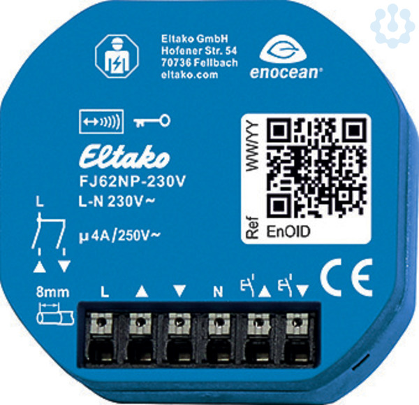 Funk-Jalousie- und Rollladen-Aktor 1+1 Schließer 4A/250V AC, nicht potenzialfrei, für einen Beschattungselemente-Motor 230V AC. Stand-by-Verlust nur 0,6 Watt. Für Einbaumontage. 49x51mm, 20mm tief. Die Anschlussklemmen sind Steckklemmen für Leiterquerschnitte von 0,2mqm bis 2,5mqm. Mit der komfortablen Tipp-Technik können bis zu 32 Funk-Universaltaster, Funk-Richtungstaster und Funk-Zentralsteuertaster eingelernt werden. Kontaktschaltung im Nulldurchgang. Bidirektionaler Funk aktivierbar. Versorgungs-, Schalt- und Steuerspannung örtlich 230V. Beim Ausfall der Versorgungsspannung wird definiert ausgeschaltet. Zusätzlich zum Funk-Steuereingang über eine innenliegende Antenne kann dieser Funk-Aktor auch mit einem eventuell davor montierten konventionellen Steuertaster örtlich gesteuert werden. Entweder getrennte örtliche Steuereingänge für Auf und Ab als Richtungstaster, oder diese zwei Eingänge werden gebrückt und mit einem Einzeltaster als Universaltaster gesteuert. Dann erfolgt die Richtungsänderung durch ein