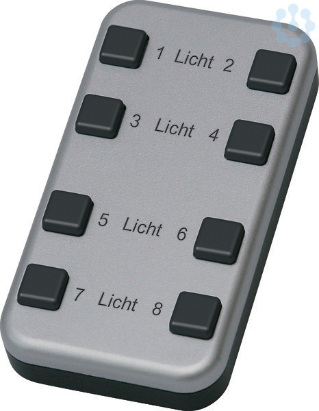 Funk-8-Kanal-Minihandsender, 45x85mm, 18mm hoch. Gewicht nur 60 Gramm. Erzeugt die Energie für Funktelegramme selbst bei Tastendruck, daher ohne Batterie. Smart Home Sensor. Der batterielose Minihandsender FMH8 enthält zwei gleiche Funkmodule wie die Funktaster FT4 und verfügt über 8 Tasten. Es können daher 8 auswertbare Funk-Telegramme gesendet werden. Das Gehäuse ist mit den Zahlen 1 bis 8 lasergraviert. Die in dem Funk-Minihandsender enthaltenen Funkmodule können gemäß Bedienungsanleitung in alle verschlüsselbare Aktoren der Baureihen 61 und 71, sowie in das FAM14 verschlüsselt eingelernt werden. Hierzu ist die Funktaster-Verschlüsselungswippe FTVW erforderlich. Verschlüsselbare Aktoren tragen das Schlüssel-Piktogramm.