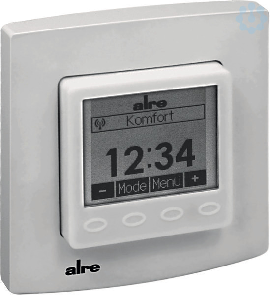 UP-Funk-Raumtemperatursensor zur Erfassung und Einstellung der Raumtemperatur mit Uhr. In Verwendung mit alre-Funk-Aktoren wird eine zeitgesteuerte Einzelraum-Temperaturregelung verwirklicht.