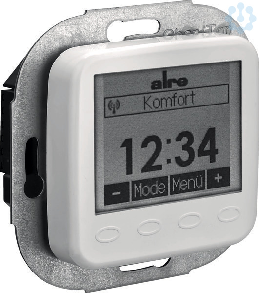 UP-Funk-Raumtemperatursensor zur Erfassung und Einstellung der Raumtemperatur mit Uhr. In Verwendung mit alre-Funk-Aktoren wird eine zeitgesteuerte Einzelraum-Temperaturregelung verwirklicht.