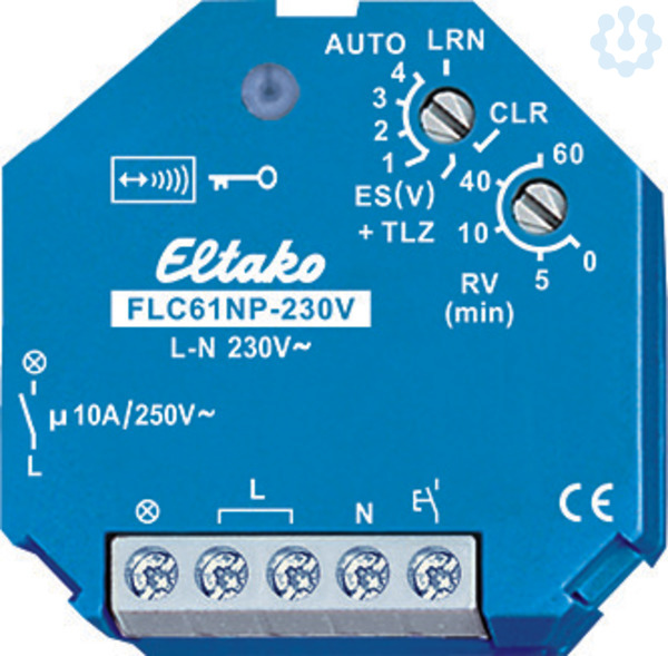 1 Schließer nicht potenzialfrei 10A/250V AC, Glühlampen 2000 Watt, 5 Betriebsarten wählbar. Verschlüsselter Funk, bidirektionaler Funk und Repeater-Funktion zuschaltbar. Stand-by-Verlust nur 0,8 Watt. Für Einbaumontage. 45mm lang, 45mm breit, 33mm tief. Versorgungs-, Schalt- und Steuerspannung örtlich 230V. Beim Ausfall der Versorgungsspannung bleibt der Schaltzustand erhalten. Bei wiederkehrender Versorgungsspannung wird definiert ausgeschaltet. Nach der Installation die automatische kurze Synchronisation abwarten, bevor der geschaltete Verbraucher an das Netz gelegt wird. Zusätzlich zum Funk-Steuereingang über eine innenliegende Antenne kann dieser Funkaktor auch mit einem eventuell davor montierten konventionellen 230V-Steuertaster örtlich gesteuert werden. Ein Glimmlampenstrom ist nicht zugelassen. Ab der Fertigungswoche 35/16 kann ein Betriebsartentaster eingelernt werden. Es können verschlüsselte Sensoren eingelernt werden. Es kann bidirektionaler Funk und/oder eine Repeater-Funktion eingeschaltet werde