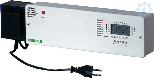 8 Kanal-Empfänger mit integrierter Schaltuhr für die Sender INSTAT 868 r1 oder -r1o zum Schalten von Stellantrieben bei Fussbodenheizungen. Automatische Einstellung der Sommer-/Winterzeit. Schaltuhr zur zeitgesteuerten Regelung von bis zu 8 unabhängigen Zonen. Anzeigelampen für den Ausgangszustand oder Störung. Mit Ventilschutz, Pumpenlogikfunktion, Taupunktüberwachung und Notbetrieb bei Störungen. Umschaltung Heizen/Kühlen über externes Signal (z.B. von einer Wärmepumpe). Steckerfertig für 230V mit Trafo für 24V, mit Hutschiene für Wandbefestigung.