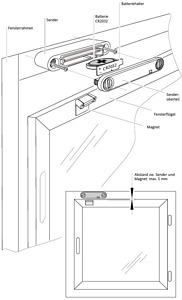 Der Funk-Fensterkontakt überträgt per Funk eine Fenster-offen, bzw. Fenster-geschlossen Information an den Funkempfänger INSTAT 868-a1Up. Bei Öffnen eines Fensters wird der Ausgang sofort abgeschaltet. Sind wieder alle Fenster geschlossen wird mit dem nächsten Ein-Stellsignal das Relais wieder eingeschaltet. Spätestens nach 30 Minuten wird die Regelung normal fortgesetzt, auch wenn noch Fenster offen sind. (Fenster wurde vergessen zu schliessen, der Raum muss vor Frost geschützt werden). Es können bis zu 10 Fenster kontakte angelernt werden.