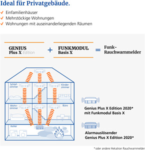 Funkmodul zur drahtlosen Vernetzung mehrerer Rauchwarnmelder Genius Plus X oder Genius Hx miteinander, zur flächendeckenden Signalisierung eines Alarms.