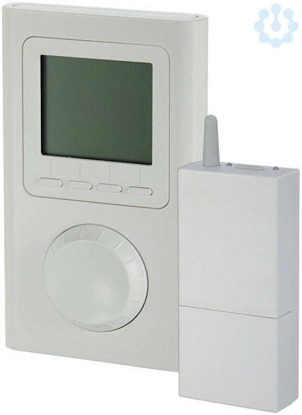 Funkthermostat mit Display und Funkempfänger mit Schaltausgang zur Nutzung in Verbindung mit Wärmespeicher oder elektrischen Fußbodenheizmatten. Der Funkthermostat ermittelt die Temperaturdifferenz zwischen Raum-Ist- und Soll-Temperatur und meldet diese an den Funkempfänger. In Abhängigkeit dieser Abweichung wird der Lüfter bzw. die Fußbodenheizung ein- und ausgeschaltet. Die Spannungsversorgung ~230 V für Funkempfänger sind bauseits vorzusehen. Der Thermostat kann wandmontiert oder mit beiliegendem Standfuß beliebig im Raum platziert werden.