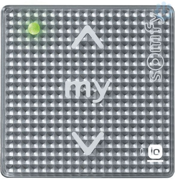 Smoove 1 IN io Silver Shine Funkwandsender 1-Kanal, zur manuellen Steuerung eines io-Funkantriebs / io-Funkempfängers oder mehrerer io-Funkantriebe / io-Funkempfänger gleichzeitig per Funk. Innovative Bedienung über Berührungstasten. Passend zu allen gängigen Schalterprogrammen über einen 50 x 50 mm Adapterrahmen der Schalterhersteller. Vielzahl an Gestaltungsmöglichkeiten mit den Somfy Smoove Rahmen. Einzel- oder Gruppenbedienung möglich. AUF-Taste zum Öffnen des Rollladens, Einfahren der Markise bzw. Einschalten der Beleuchtung. my-Taste zum Stoppen oder Aufrufen der Lieblingsposition. AB-Taste zum Schließen des Rollladens, Ausfahren der Markise bzw. Ausschalten der Beleuchtung, Programmiertaste auf der Rückseite des Moduls. Über die Mode-Taste auf der Rückseite kann der Smoove 1 IN io auch für die Bedienung von Raffstoren eingestellt werden. Befestigungsplatte für einfache und flexible Wandmontage, keine UP-Dose erforderlich. LED zur Sendeanzeige. Drahtlos und batteriebetrieben, daher geringster Installa
