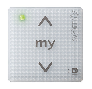 Smoove 1 io Pure Shine Funkwandsender 1-Kanal, zur manuellen Steuerung eines io-Funkantriebs / io-Funkempfängers oder mehrerer io-Funkantriebe / io-Funkempfänger gleichzeitig per Funk. Innovative Bedienung über Berührungstasten. Passend zu allen gängigen Schalterprogrammen über einen 50 x 50 mm Adapterrahmen der Schalterhersteller. Vielzahl an Gestaltungsmöglichkeiten mit den Somfy Smoove Rahmen. Einzel- oder Gruppenbedienung möglich. AUF-Taste zum Öffnen des Rollladens, Einfahren der Markise bzw. Einschalten der Beleuchtung. my-Taste zum Stoppen oder Aufrufen der Lieblingsposition. AB-Taste zum Schließen des Rollladens, Ausfahren der Markise bzw. Ausschalten der Beleuchtung, Programmiertaste auf der Rückseite des Moduls. Über die Mode-Taste auf der Rückseite kann der Smoove 1 IN io auch für die Bedienung von Raffstoren eingestellt werden. Befestigungsplatte für einfache und flexible Wandmontage, keine UP-Dose erforderlich. LED zur Sendeanzeige. Drahtlos und batteriebetrieben, daher geringster Installations