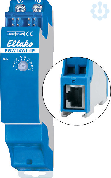Gateway mit IP-Schnittstelle für Baureihe 14-Stromzähler über LAN oder WLAN. Bidirektional. Stand-by-Verlust nur 0,8 Watt. Reiheneinbaugerät für Montage auf Tragschiene DIN-EN 60715 TH35. 1 Teilungseinheit = 18mm breit, 58mm tief. Das Gateway ist nur 1 TE breit: Für den Betrieb muss das Gateway in ein LAN oder WLAN eingebunden werden. Die WLAN-Verbindung nutzt das 2.4 GHz Frequenzband. Die LAN-Anbindung erfolgt per RJ45-Stecker mit 10/100Base-T. Anschluss an den Eltako-RS485-Bus. Querverdrahtung Bus und Stromversorgung mit Steckbrücke. Betrieb in Verbindung mit FAM14 oder FTS14KS. Die Hold-Klemme wird mit dem FAM14 oder FTS14KS verbunden. Die IP-Verbindung erfolgt wahlweise über LAN oder WLAN. Das Gateway überträgt Daten von beliebigen Eltako-Stromzählern am RS485-Bus über das MQTT-Protokoll. Die Daten werden von RS485-Bus an einen beliebigen externen MQTT Broker übertragen. Für mehr Details zu MQTT siehe z. B. https://mqtt / Die Daten sind gemäß dem Enocean/IP-Format codiert.