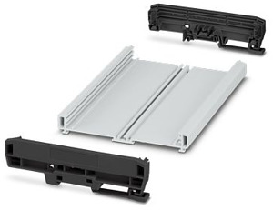 Profilgehäuse (PA), Montageart: Tragschienenmontage, Farbe: lichtgrau (7035), Maße auf Tragschiene: Breite: 183,8 mm, Höhe: 142,3 mm, Tiefe: 39,45 mm, einschl. 2 Seitenelemente (PA), Farbe: schwarz (9005), für Leiterplatten mit Breite: 122 mm, Länge: 180 mm, Leiterplattenfläche: 19240 mm²