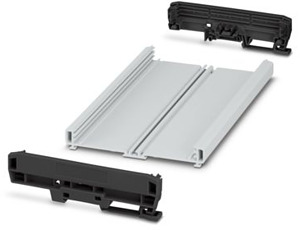 Profilgehäuse (PA), Montageart: Tragschienenmontage, Farbe: lichtgrau (7035), Maße auf Tragschiene: Breite: 203,8 mm, Höhe: 142,3 mm, Tiefe: 39,45 mm, einschl. 2 Seitenelemente (PA), Farbe: schwarz (9005), für Leiterplatten mit Breite: 122 mm, Länge: 200 mm, Leiterplattenfläche: 21590 mm²